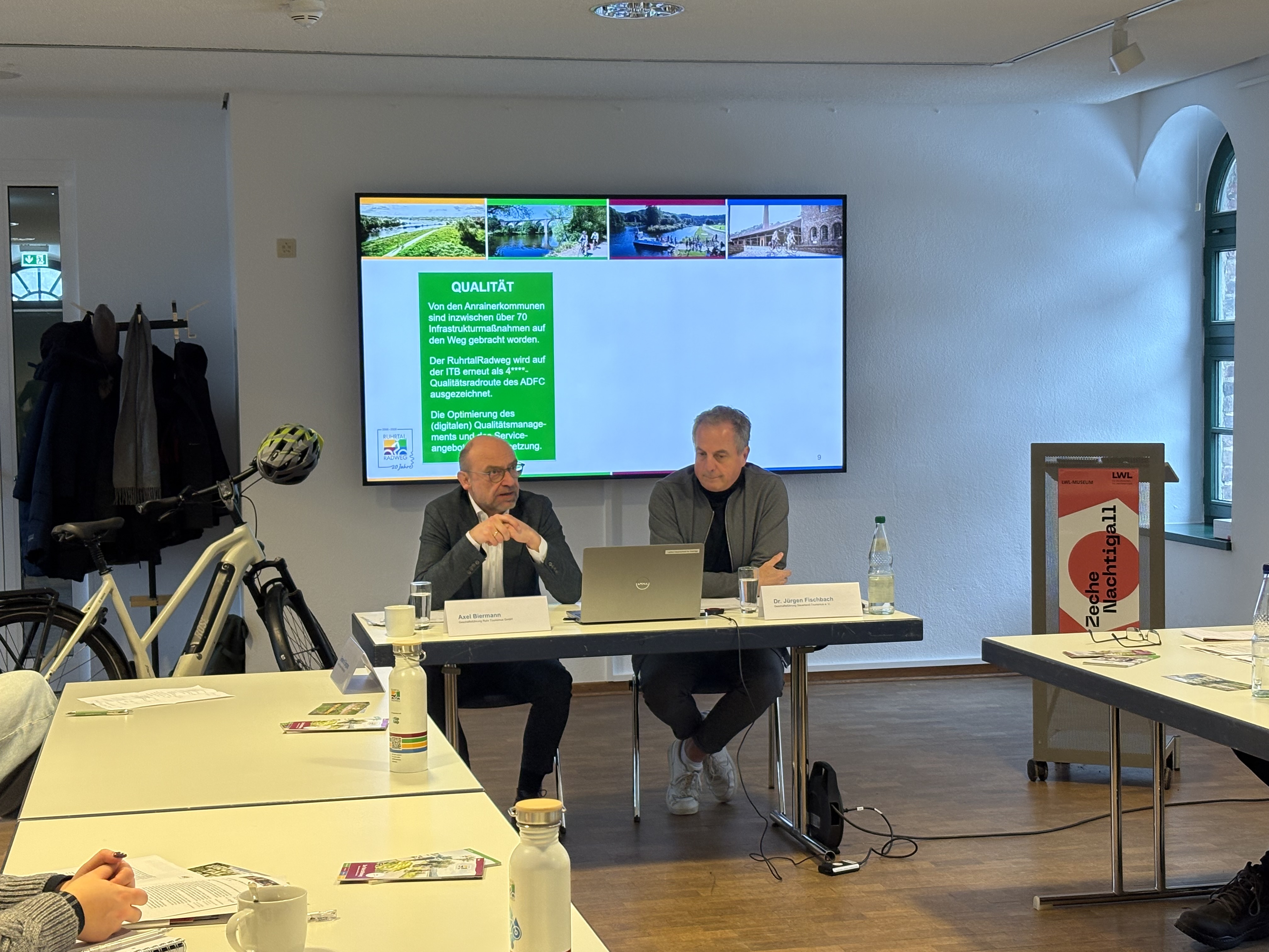 Zum 20-jährigen Jubiläumsauftakt des RuhrtalRadweges zogen die Projektverantwortlichen Axel Biermann (Ruhr Tourismus GmbH) und Dr. Jürgen Fischbach (Sauerland-Tourismus e.V.) beim Gespräch mit der Presse im LWL-Museum Zeche Nachtigall in Witten – dem Ort, wo 2006 die Eröffnung stattfand - Resümee und gaben einen Ausblick auf geplante Geburtstagsaktivitäten in diesem Jahr. Im Rahmen der Kampagne „20 Jahre – (mehr als) 20 Bäume“ möchte jede Anrainerkommune einen RuhrtalRadweg-Jubiläumsbaum pflanzen und mit der Aktion „Bäume erradeln“ sollen Radwandernde durch das Befahren der gesamten Strecke Baumsetzlinge erhalten können, die dann im Rahmen eines Pflanztages am RuhrtalRadweg in Winterberg in die Erde gebracht werden.