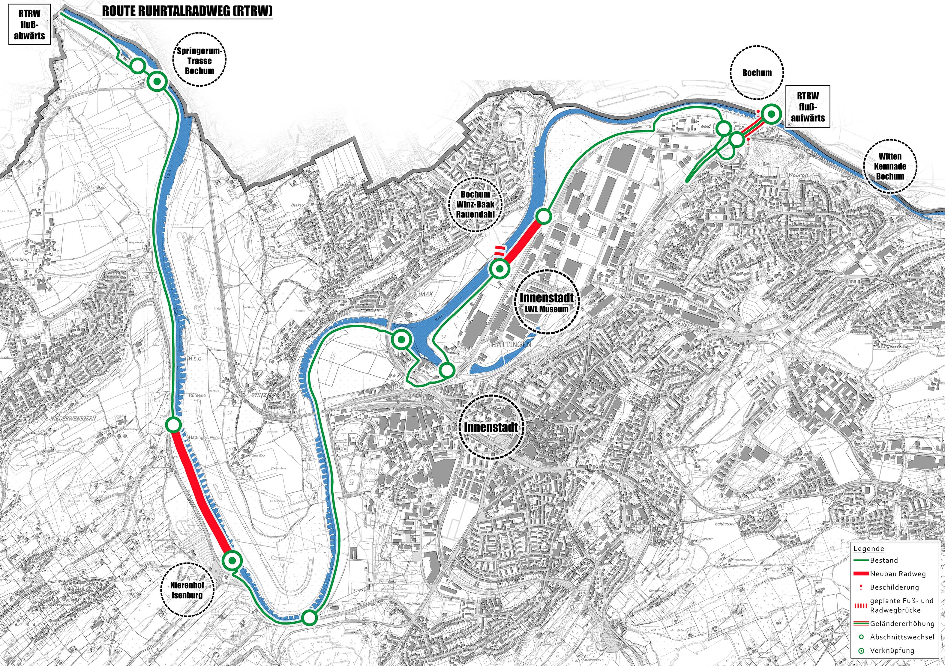 In Planung sind aktuell einige Erweiterungen. Auf einem ca. 600 m langen Abschnit entlang von Minigolf Ruhrtal ist eine Separierung geplant. Der heutige gemeinsame Fuß- und Radweg entlang der Ruhr soll künftig alleiniger Fußweg sein, parallel dazu entsteht ein neuer, 4 Meter breiter Weg alleine für den Radverkehr. Auch unterhalb der Isenburg werden separate Fuß- und Radwege umgesetzt.