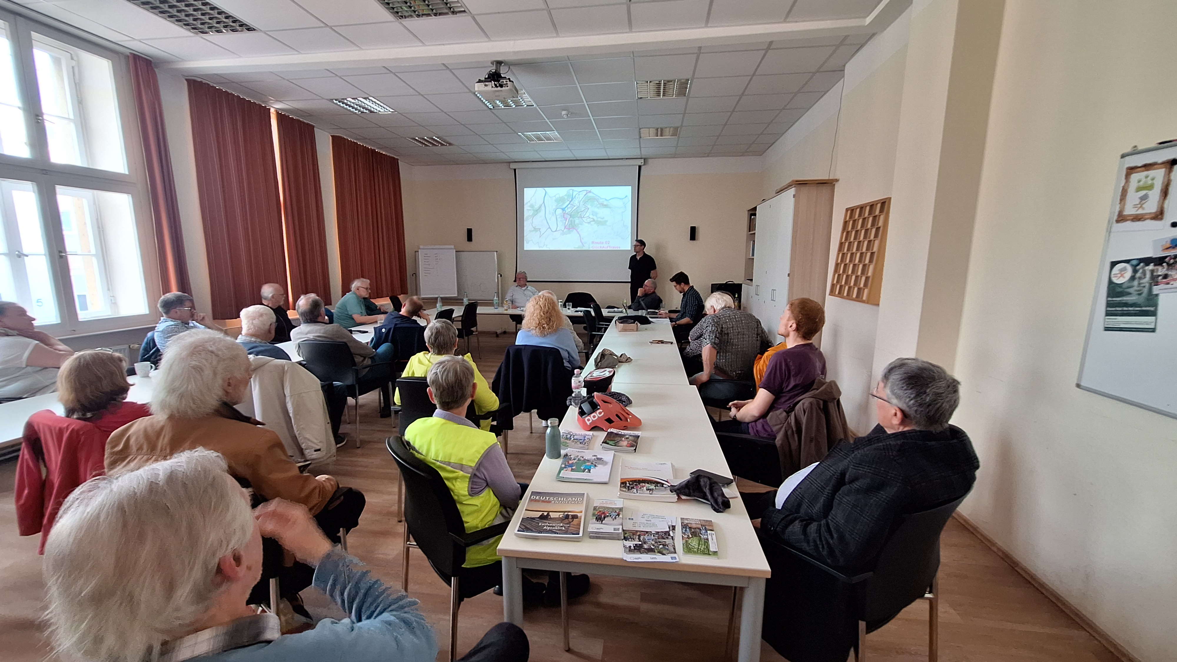 Baudezernent Jens Hendrix und der Nahmobilitätsbeauftragte der Stadt Hattingen Johannes Fröhlich haben auf Einladung des ADFC Hattingen/Sprockhövel über Konzepte und Planungen zur Radinfrastruktur berichtet. Unter der Moderation von ADFC Kreis-Vorstand Alfons Eilers gab es einen regen Austausch mit den etwa 30 Gästen zu den Themenkomplexen Ruhrtalradweg und IGA 2027, Glückauftrasse, Sicherheit auf Radwegen nebst Fußgängerzone, Stadtteil-Verbindungen und Lückenschlüsse, und Mobilität in neuen Wohnquartieren wie Isenberg-Viertel, dem ehemaligen O&K Gelände und Pottacker.