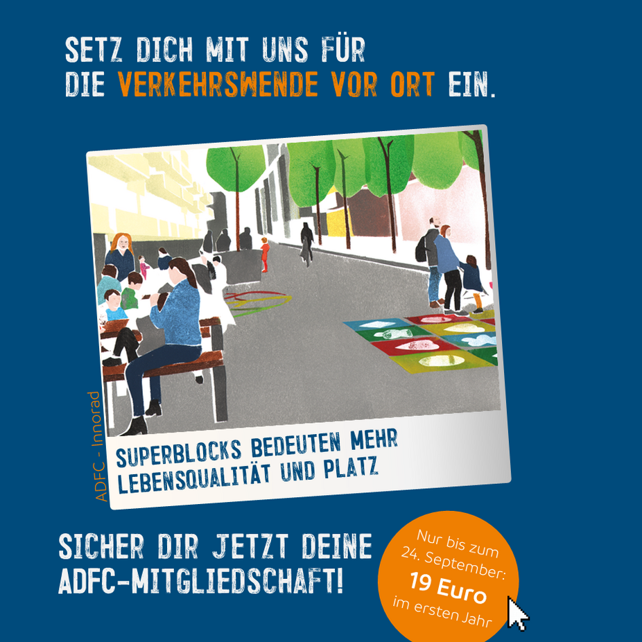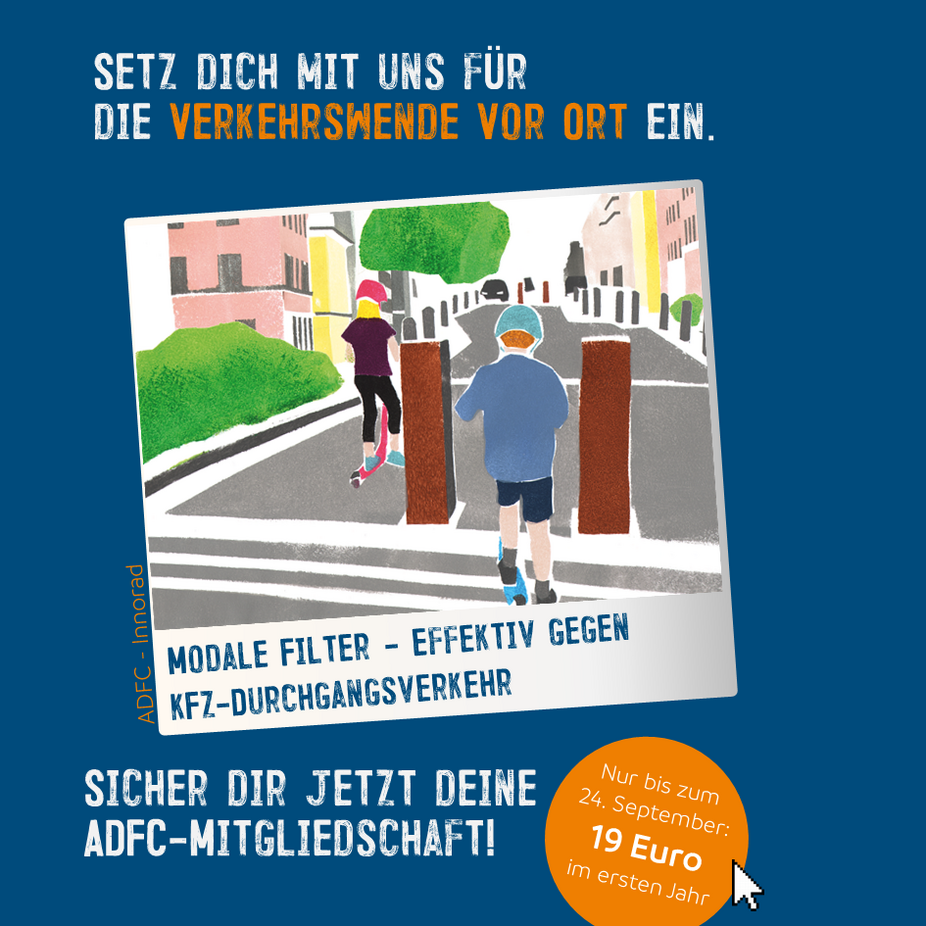 Setzen Sie sich mit uns für die Verkehrswende vor Ort ein und sichern Sie sich jetzt - nur für kurze Zeit und im Rahmen der Europäischen Mobilitätswoche - Ihre ADFC-Mitgliedschaft zum Vorteilspreis (gültig vom 15. - 24. September).